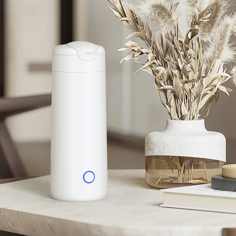 300ML Tragbare Tasse - Diese automatische elektrische Heizwassertasse ist klein und tragbar, so dass Sie sie einfach überallhin mitnehmen können. Das Netzkabel ist angeschlossen und wird in einem versteckten Stauraum an der Unterseite der Tasse aufbewahrt, um zu verhindern, dass Sie das Netzkabel vergessen.
