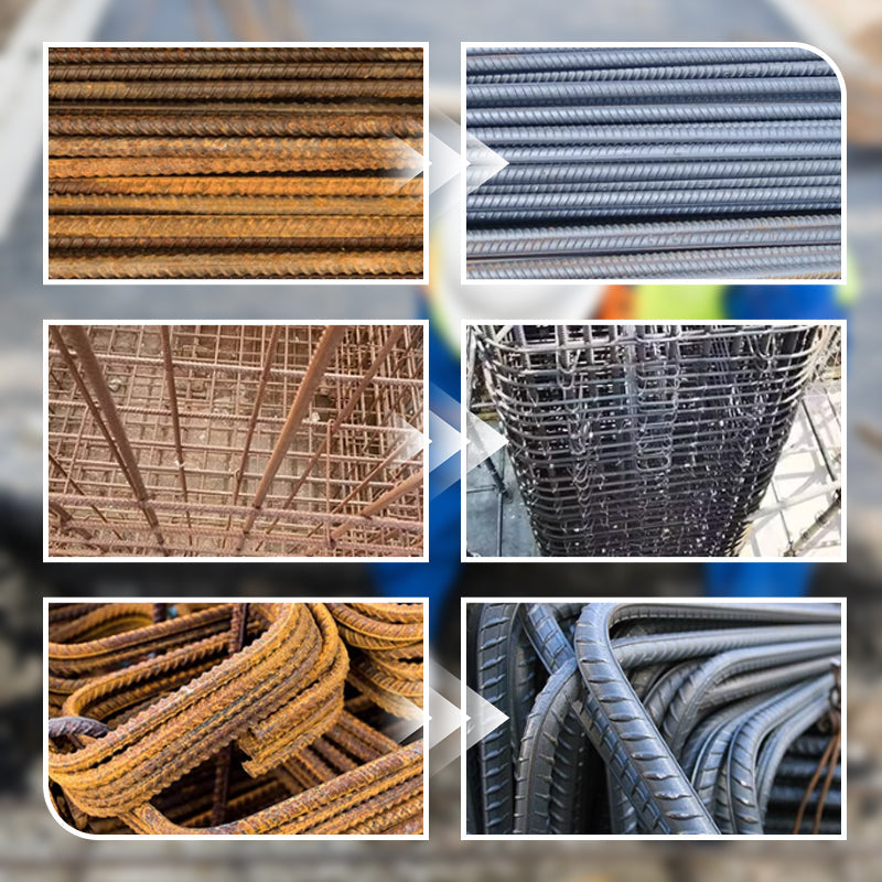 VIELSEITIGE ANWENDUNG - Das Produkt eignet sich für verschiedene Metalloberflächen, einschließlich Bewehrungsstahl, Gusseisen und Kupfer, und ist somit eine ideale Lösung für unterschiedliche Anforderungen bei der Rostentfernung.