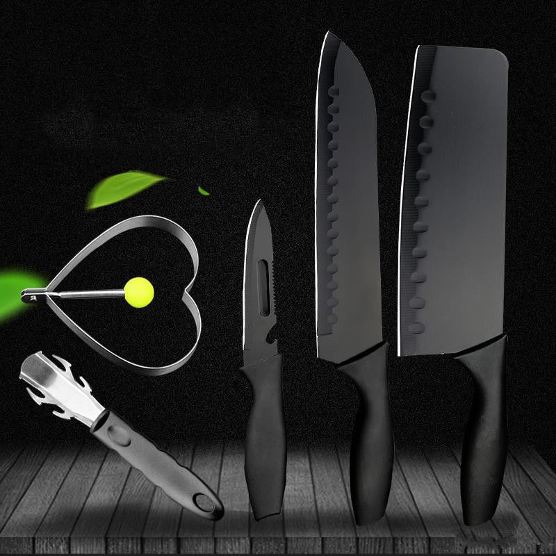 Dieses Küchenmesserset aus Edelstahl enthält alle wichtigen Messer, die Sie für alltägliche Kochaufgaben benötigen. Das Set beinhaltet ein Aufschnittmesser, ein Kochmesser, ein Mehrzweckmesser, einen Krallenhobel und eine Eierbratform . Jedes Messer ist aus hochwertigem Edelstahl gefertigt, der für eine jahrelange Lebensdauer ausgelegt ist. Egal, ob Sie ein Profikoch sind oder einfach nur gerne zu Hause kochen, dieses Set ist perfekt für Sie!