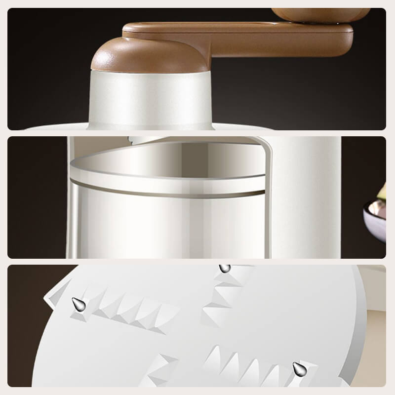 Einfach zu bedienen Einfache Bedienung, vier Schritte zum Eisraspeln: Eiswürfel einlegen; den Griff drehen; einen feinen Smoothie erhalten; das Lieblingsobst hinzufügen; Kinder können das Eis mühelos zu fluffigen Smoothies rasieren.