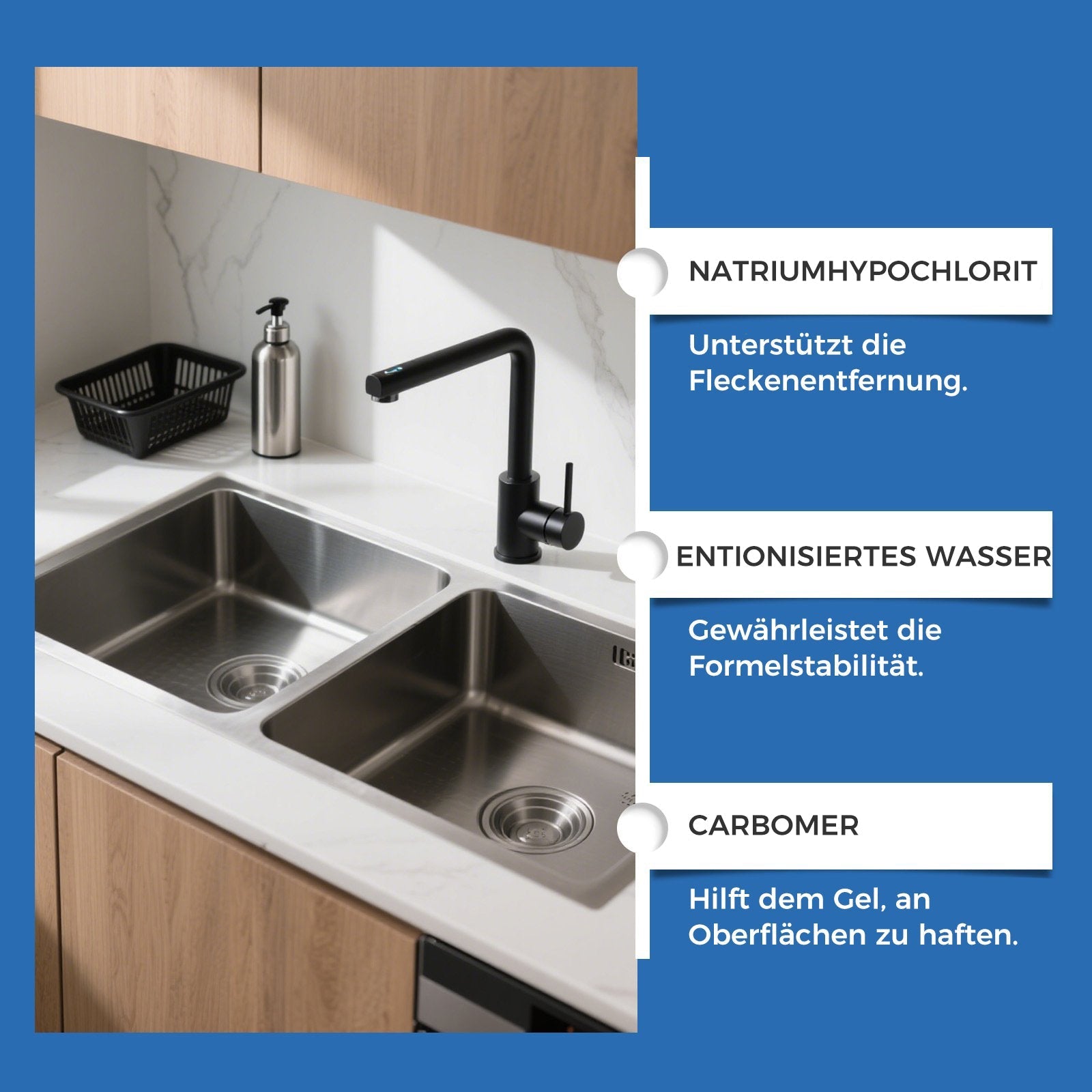 Trotz seiner starken Reinigungskraft ist die Formel nicht korrosiv und schonend zu Oberflächen. Sie ist sicher in Haushalten mit Kindern oder Haustieren anwendbar und reinigt effektiv, ohne das Material zu beschädigen oder aggressive chemische Rückstände zu hinterlassen.