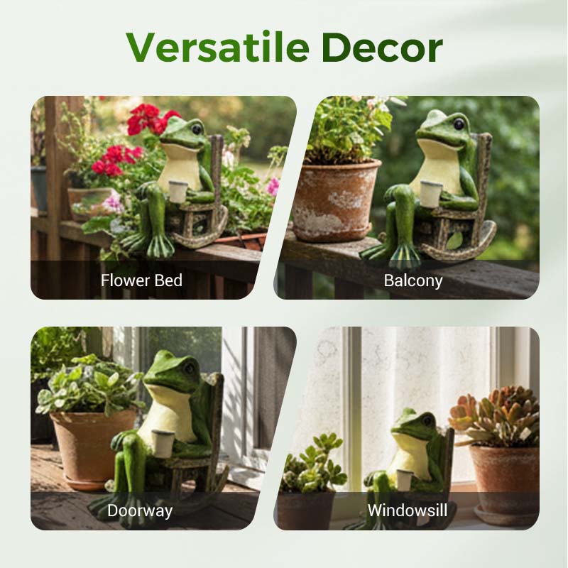 CHARMANTES SCHAUKELSTUHL-DESIGN - Das verspielte Design eines Frosches, der entspannt in einem Schaukelstuhl sitzt, verleiht jedem Bereich eine humorvolle Note und rustikalen Charme und wird zu einem gemütlichen Blickfang.