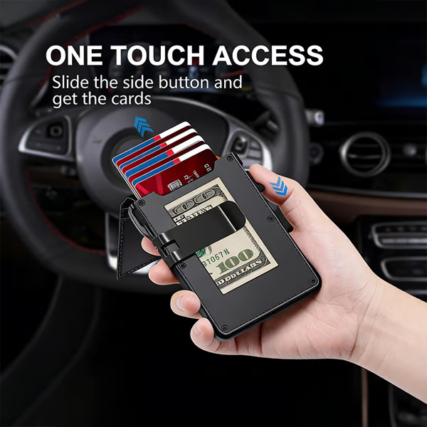 Das ultimative Smart-Pop-Up-Portemonnaie: Schlank, sicher und mit RFID-Schutz.